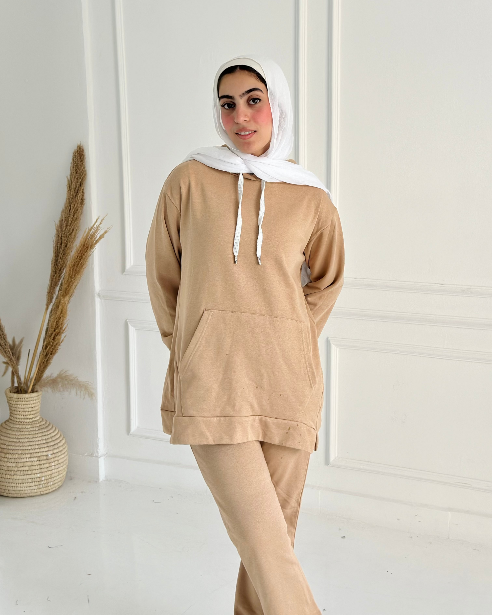 A cozy two-piece loungewear set made from soft melton fabric. It includes a comfortable top with a relaxed fit and matching pants designed for everyday warmth and ease. Perfect for casual outings, home wear, or layering in cooler weather.